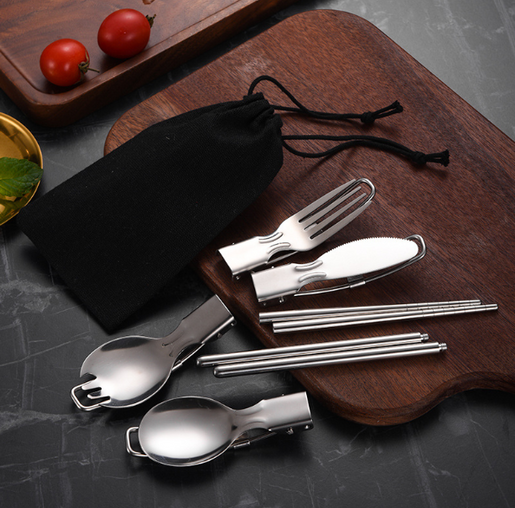 Outdoor portable 304 stainless steel folding knife and fork spoon detachable chopstick set
